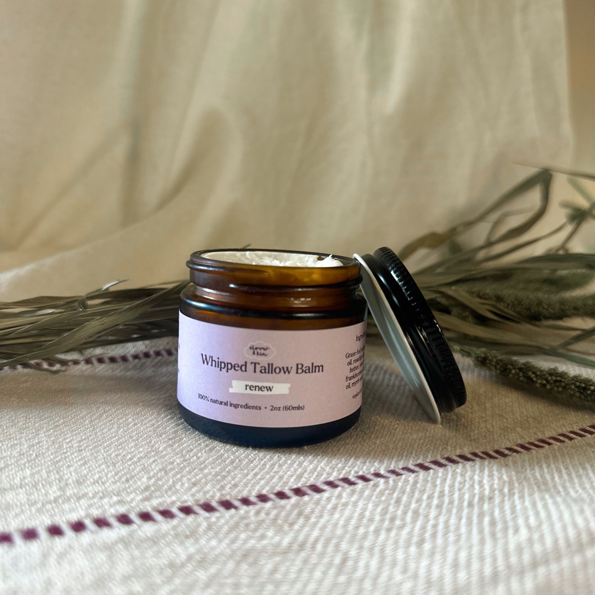 Our Renew Blend is a long-time customer favorite, known for its warm, woodsy, and herbaceous aroma paired with a smooth, buttery texture. This balm is expertly crafted to enhance skin texture and firmness, delivering a fresh, radiant complexion.