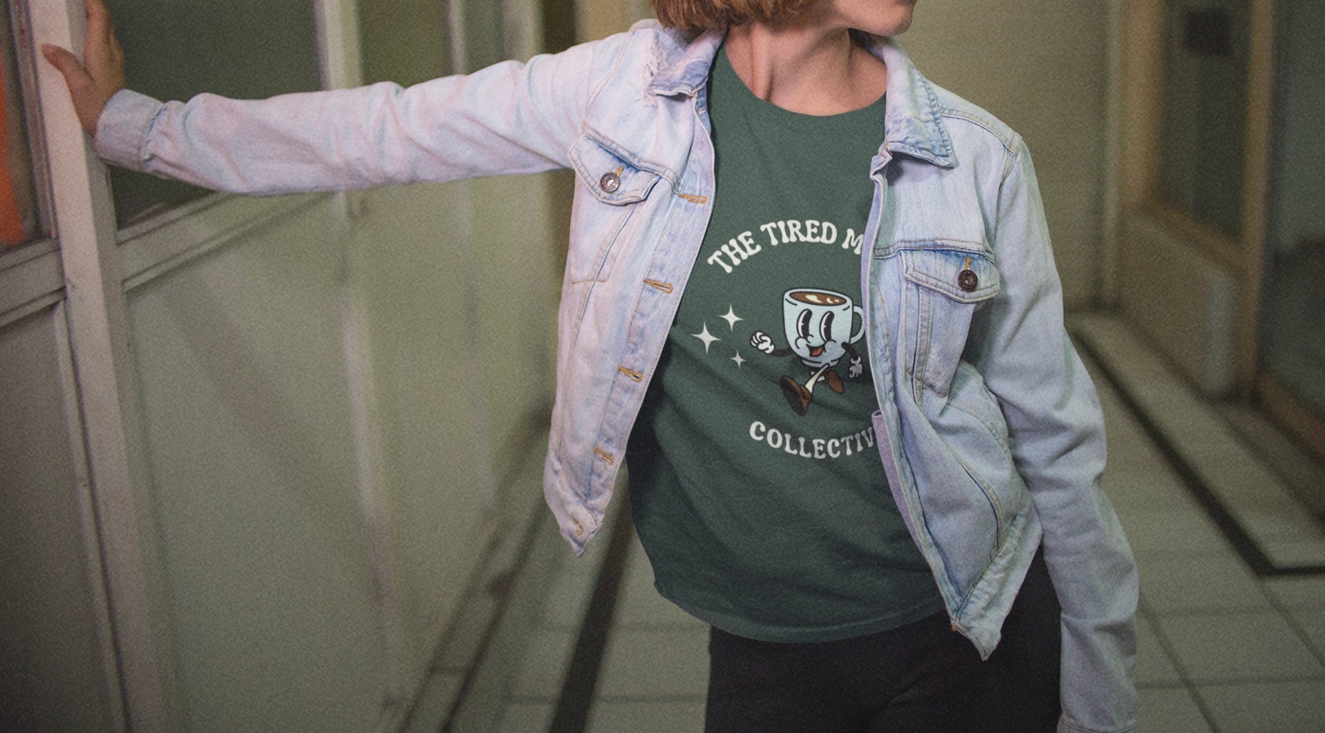 Meet Wally, one of our beloved mascots from The Tired Moms Collective. His rubber hose style vintage design adds a charming, whimsical retro touch to your wardrobe. These shirts are comfy, long-lasting and practical for every day mom-ing!